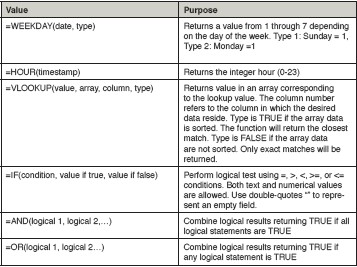 其他有用的操作,包括冷凝成每小时(或每天)值的数据,到周末或空置期间的分离,并确定是否是开启或关闭电机。 Excel提供了以下功能,从时间戳中提取的信息